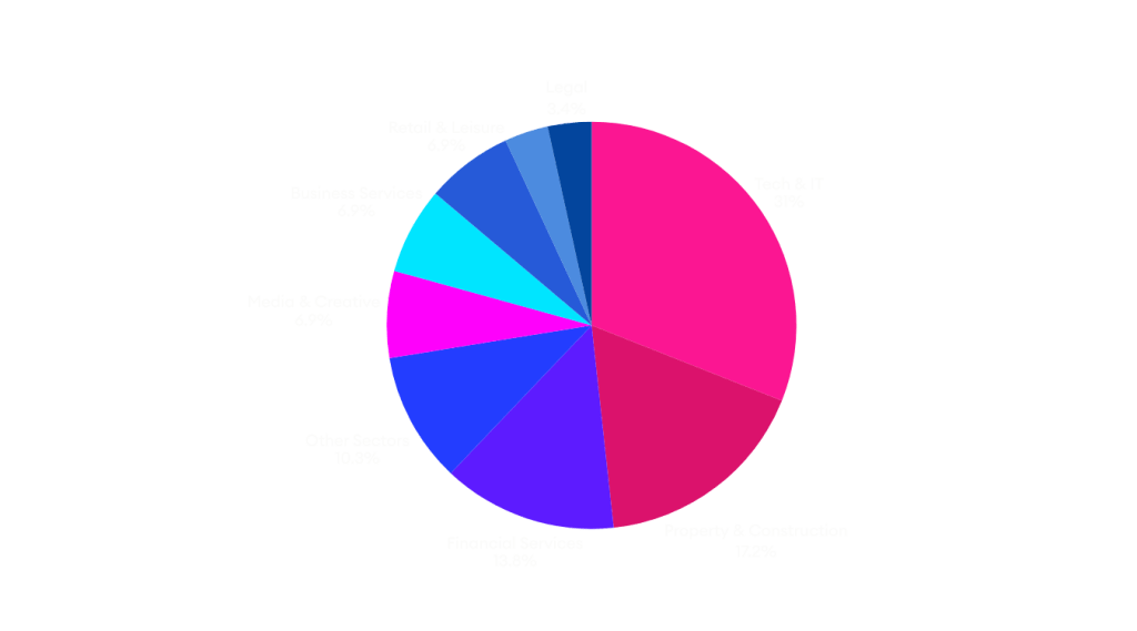 Media & Creative and Retail & Leisure each represented 7%, showing selective, targeted moves rather than broad-based growth.