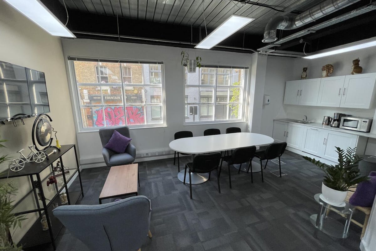 2 Bath Place is a fully self-contained office space set within a peaceful cobbled courtyard, just moments from the energy of Shoreditch. It offers a private working environment complete with its own meeting room, kitchen and lounge areas—ideal for teams looking for independence and a quiet space to focus. With excellent natural light, original features, and a warm, professional atmosphere, it’s well-suited to creative and growing businesses. The location is just a short walk from Old Street and Shoreditch High Street stations, with great cafés, shops and restaurants nearby.
