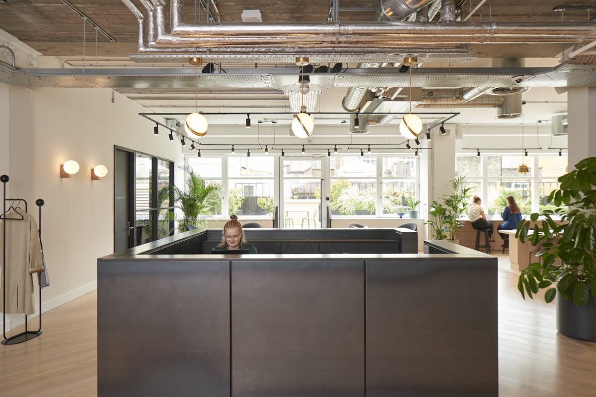 Stylish Covent Garden HQ with luxe reception, private offices, lounge, meeting rooms, phone booths, showers & rooftop terrace.