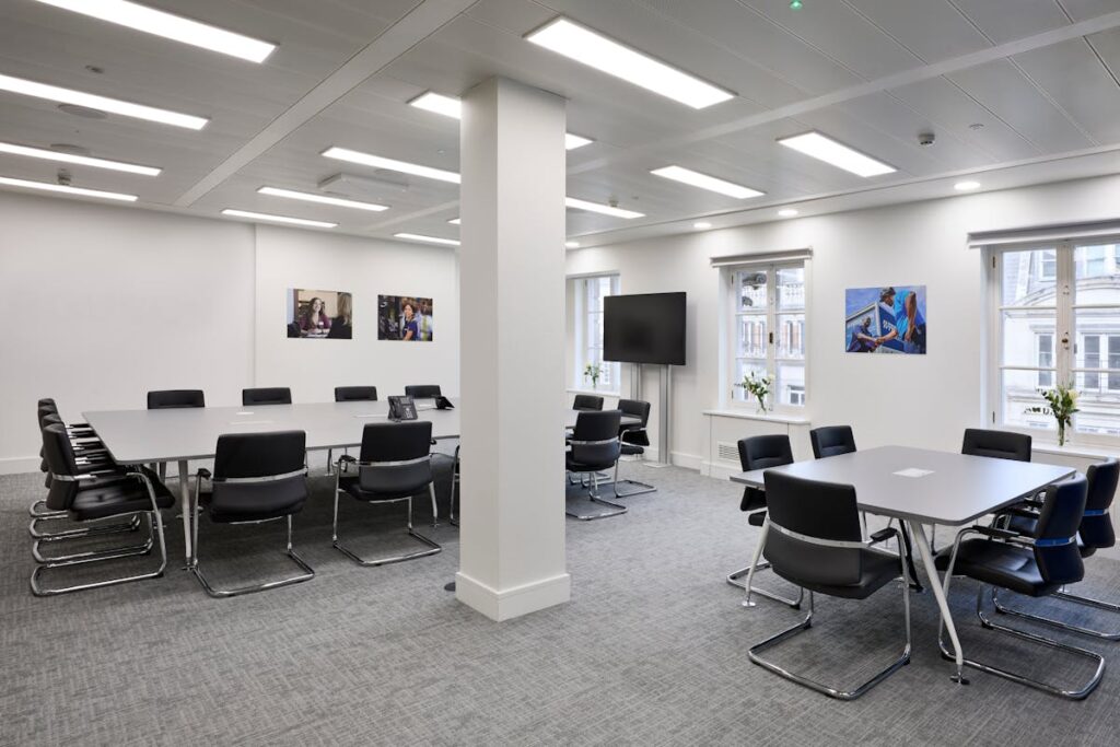 Set in a stunning 1920s Portland stone–clad building at the junction of Pall Mall and St James’s Street, 70 Pall Mall blends period elegance with modern workspace standards. Renovated in 2019, it offers flexible private offices and communal lounges with high ceilings, grand frontage, and views across St James’s and The Mall. Facilities include on-site IT support, invite-meets reception, showers and secure bike racks, along with 24/7 access and transparent monthly billing covering rent, business rates, utilities, and cleaning.