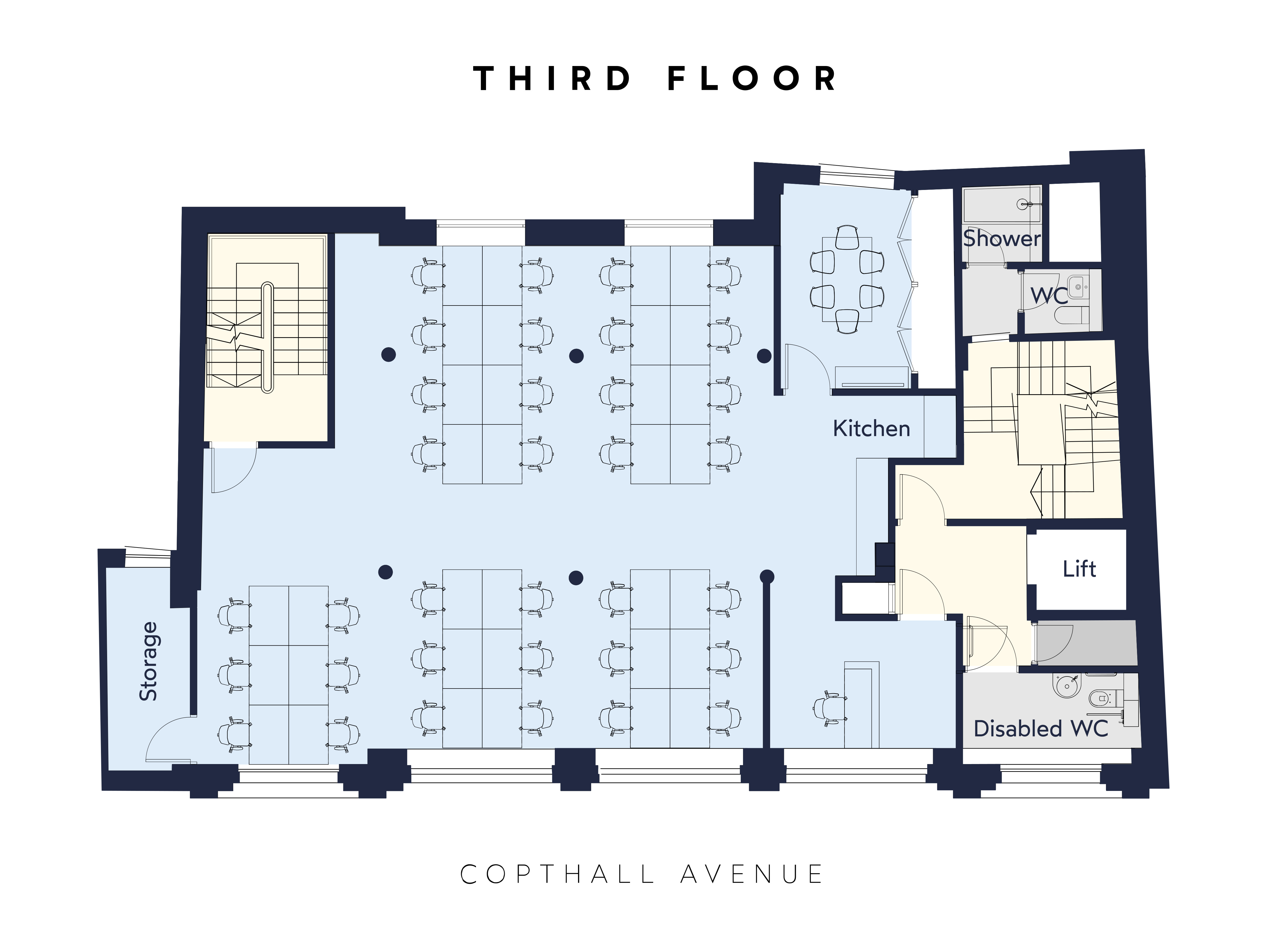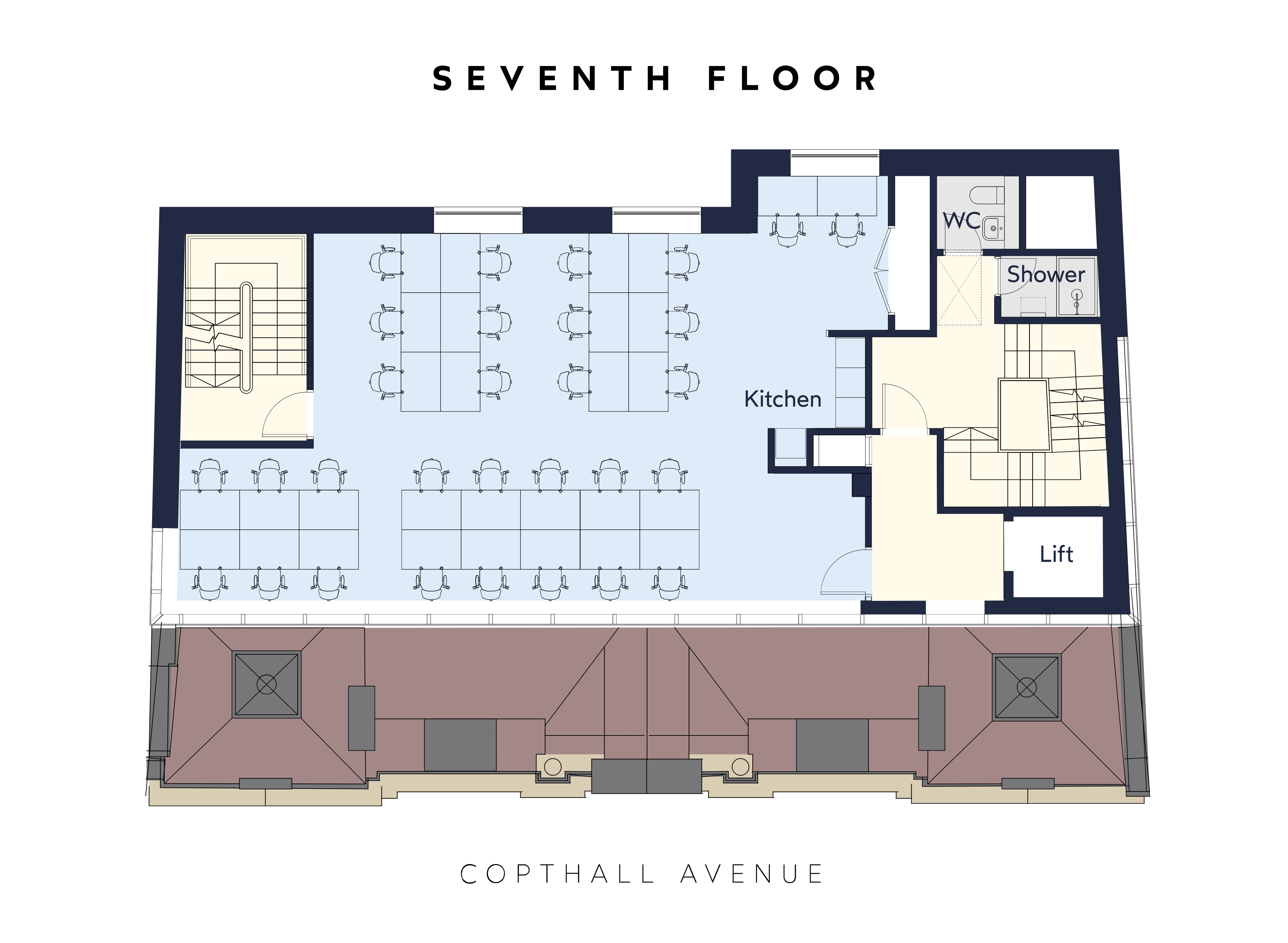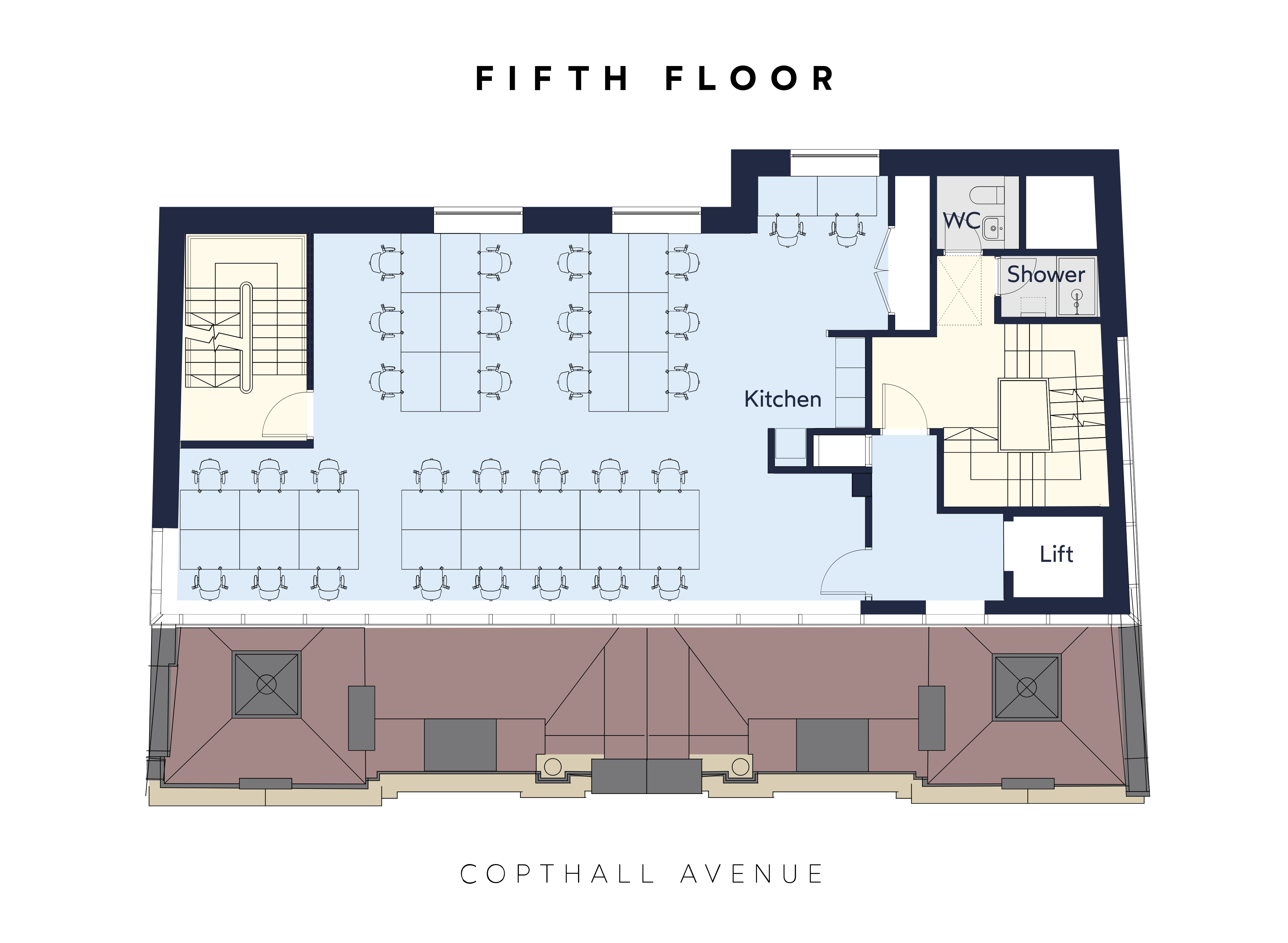 Copthall House combines a beautifully restored period exterior with a modern, manned reception and 24-hour secure access. Inside, original features like glazed brick bays and cast-iron columns meet high-end contemporary finishes. The building is EPC B rated. Amenities include bike storage, lift access, showers, and a roof terrace.